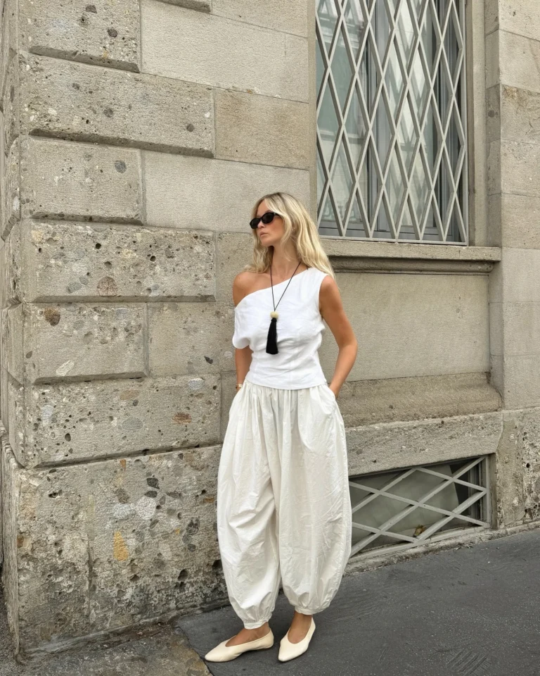 A versatilidade, aliás, explica parte do sucesso. O calçado transita bem com jeans reto, alfaiataria relax e vestidos fluidos. A lógica é simples: sempre que o look pede algo polido, mas os pés imploram por descanso, a sapatilha com recorte em V cumpre o papel sem comprometer a elegância.